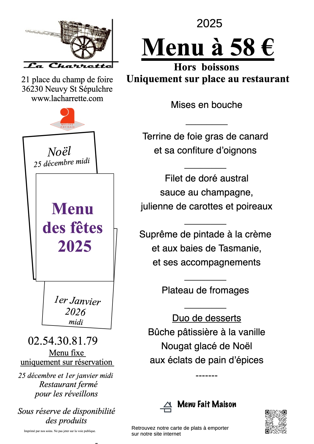 Notez que notre restaurant est fermé les soirs et le lundi.